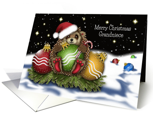 Christmas For a Grandniece Hedgehog With Christmas Ornaments