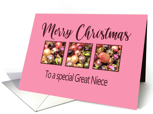 Great Niece Merry Christmas Colored Baubles on Pink