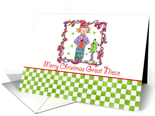 Merry Christmas Great Niece Holiday Elf Candy Canes Illustration