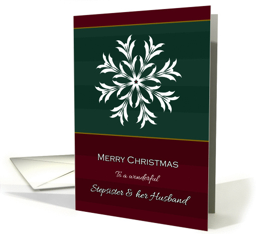| Artist Notes: | A simple snowflake adorns the front of this red and green striped Christmas to a wonderful stepsister and her husband card ... with an old fashioned kind of feel. Design available for all family relations. Please feel free to change and/or add your own sentiment on the inside. |