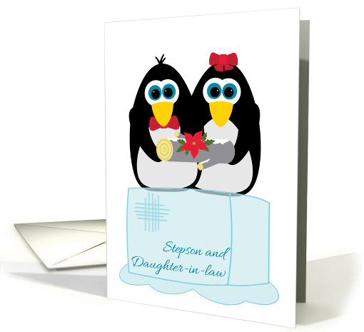 | Title: | Stepson and Daughter-in-law Christmas Cute Penguins on Ice Block |