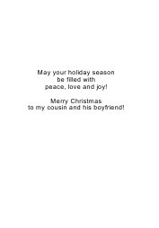 Christmas items such as holly, snowflakes, presents, mistletoe, pine trees, bows and hearts decorated in a bauble ornament shape with a dove in the middle. The words 'Merry Christmas' is created with Ness Nordberg's unique hand lettering. A lovely Christmas card to send to your cousin and his boyfriend.