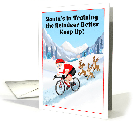 | Artist Notes: | This festive Christmas card showcases Santa Claus speeding down a snowy hill on a candy cane striped bike, with his cheerful reindeer racing close behind. It’s the perfect holiday design for cyclists, bike riders, and anyone who loves a fun and active Christmas season. |