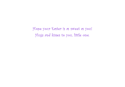 Baby's first Easter can be customized with any name. An adorable purple bunny laying in the grass surrounded by pastel gingham Easter eggs. There are two cute little pastel butterflies flying around. The flowers look like they are made of jelly beans. The pastel gingham banner reads" Happy Easter". Inside message says" Hope your Easter is as sweet as you! Hugs and kisses to you, little one" Inside message may be changed by you.