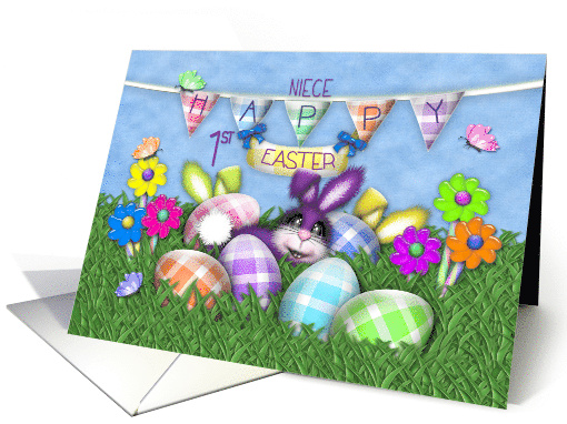 1st Easter for Your Niece Bunnies Gingham Eggs, Jelly Bean Flowers
