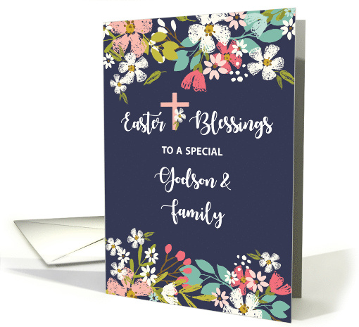 | Title: | Godson and Family Easter Blessings of Risen Christ Flowers on Navy |