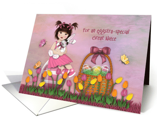Easter For a Great Niece Girl Brunette Sitting on Egg Holding Bunny
