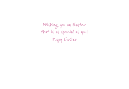 This adorable little brunette with pigtails and pink bows, is sitting on a gingham Easter egg holding a cute white bunny and butterflies flying around. The scene is set in a garden of pink, orange and yellow tulips with a large basket of colored eggs. Inside message reads: "Wishing you an Easter that is as special as you! Happy Easter " Inside message may be changed by you.