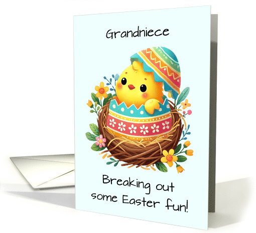 Break out some Easter fun with your Grandniece with this cute card with a chick breaking out of a colorful pattered shell in a nest. Perfect for younger Grandnieces.