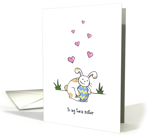 | Title: | Happy Easter to twin sister, Cute bunny rabbit hugs egg |