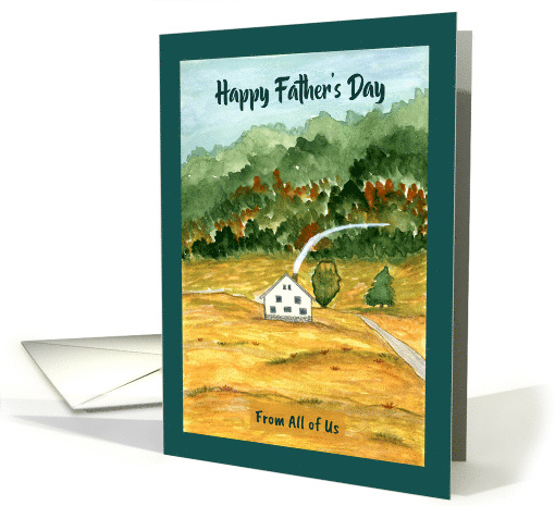 | Artist Notes: | Celebrate someone awesome with this heartfelt Father’s Day card from a group, showcasing a peaceful watercolor painting of a cozy farmhouse with chimney smoke, nestled in a countryside landscape with trees and a mountain backdrop. |