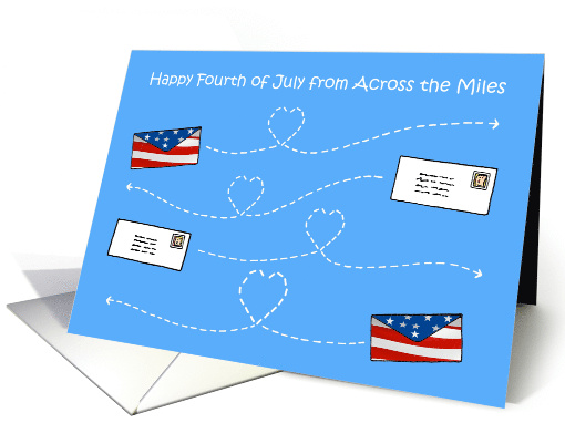 | Artist Notes: | An illustration of envelopes flying through the sky. Two of the envelopes have a stars and stripes pattern on them. The words 'Happy Fourth of July from Across the MIles' accompany the image. |