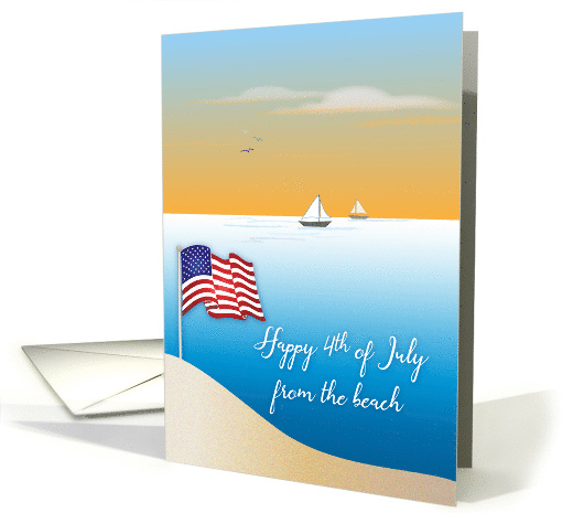 Give this beach theme 4th of July card to friends and family. The cover features a calm scene of sunset, sailboats, ocean, and sand. The headline is white and the flag is courtesy of pixabay. You may change the inside message if you wish. ©Gail Pepin