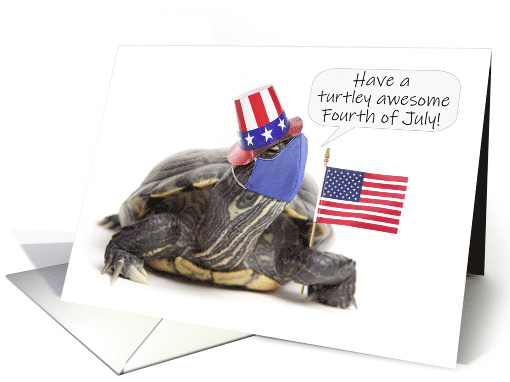 | Artist Notes: | This silly red eared slider turtle in a face mask and patriotic hat holding the American flag is a turtley awesome way to wish someone a Happy Fourth of July from a safe social distance! |