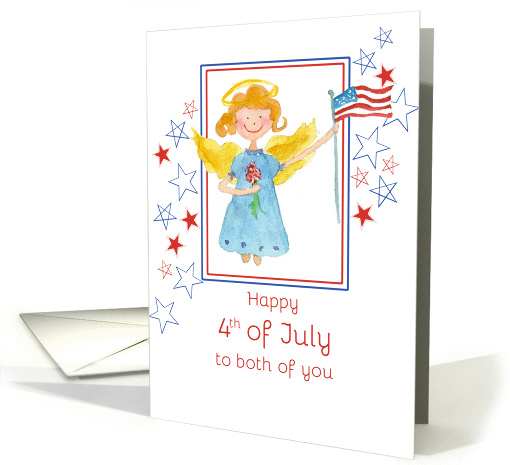 | Title: | Happy 4th of July To Both of You Patriotic Angel Watercolor Art |