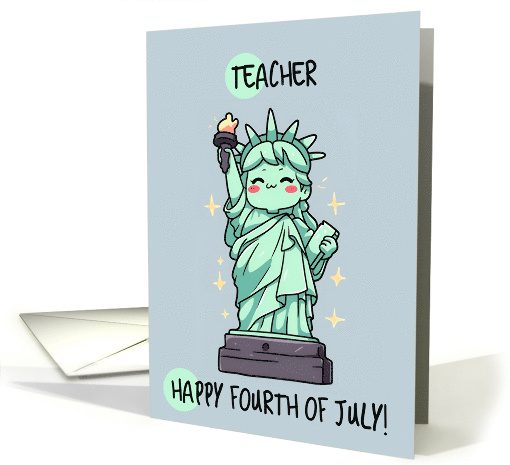 | Artist Notes: | A cute Lady Liberty in a clean Kawaii style on a light blue background with the text 'teacher Happy fourth of July'. The perfect celebrational card to send to your teacher to celebrate the birthday of America. |