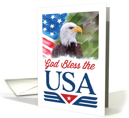 Artist Notes: | Wish someone a Happy Independence Day with this patriotic and colorful design featuring the title, "God Bless the USA." Type appears with brushed effect composite image of eagle and american flag. |