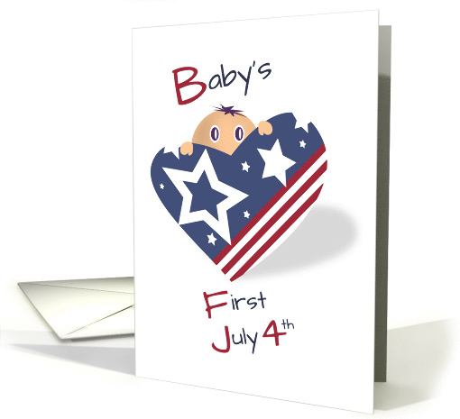 | Artist Notes: | Illustrated Happy First July 4th card. Big eyes of a baby staring from behind a heart with stars and stripes. Fingers hold tightly onto the heart. |