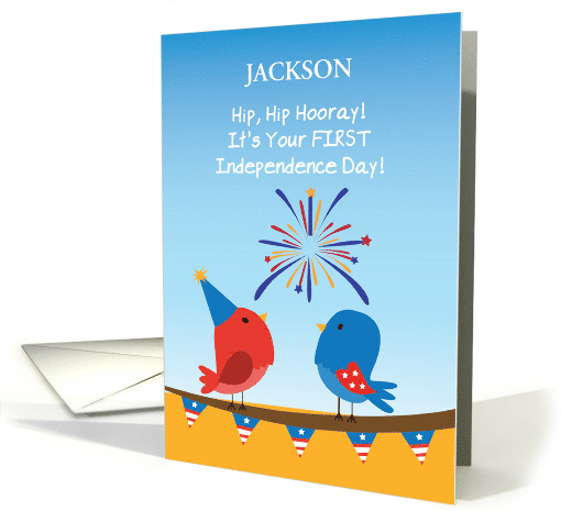 | Artist Notes: | The "Custom Name Baby's First 4th of July Cute Birds Watching Fireworks" card is a delightful and personalized celebration of a baby's inaugural Independence Day. The baby’s name is prominently displayed in playful, elegant typography, adding a special, personalized touch to the card. |