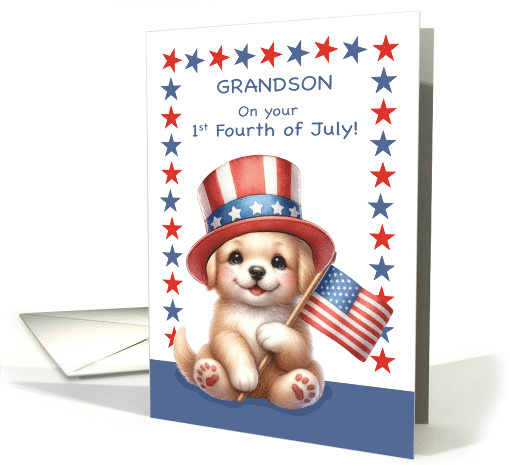 | Title: | Grandson 1st Fourth of July Cute Dog With Hat and Flag |