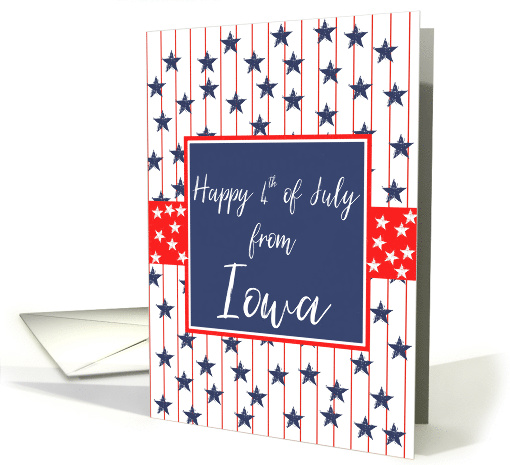 | Artist Notes: | Iowa 4th of July Blue Chalkboard. Stars and stripes to celebrate independence day. Another Studio Porto Sabbia creation! This 4th of July Chalkboard on Stripes card is also available for all US states and for many different (family) relations |