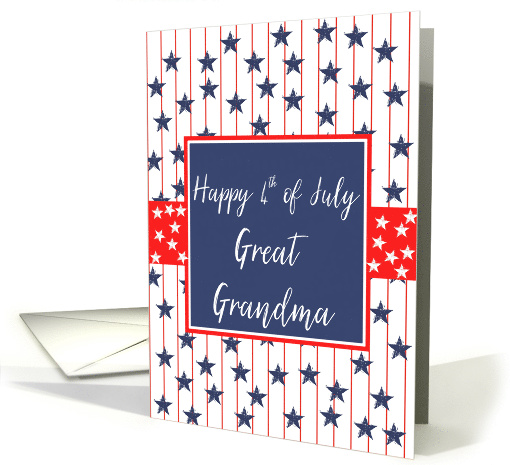 Artist Notes: | Great Grandma 4th of July Blue Chalkboard. Stars and stripes to celebrate independence day. Another Studio Porto Sabbia creation! This 4th of July Chalkboard on Stripes card is also available for all US states and for many different (family) relations. |