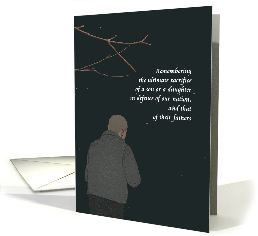 Artist Notes: | On November 9th, Gold Star Father's Day, we remember the fathers whose children have made the ultimate sacrifice in defence of our nation. This sketch shows a man standing alone under the night sky. Above him is a partial view of bare branches. |