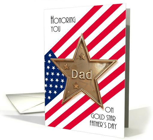 Artist Notes: | A Gold Star Effect With a Raised Effect Dad in the Center, sitting on the American Flag, with Text at the top, honouring You and bottom right on Gold Star Father's Day |