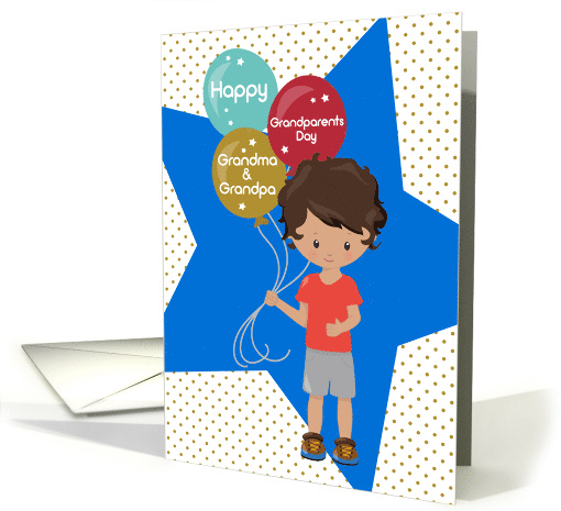 | Title: | Grandma and Grandpa Happy Grandparents Day Young Boy with Balloons |