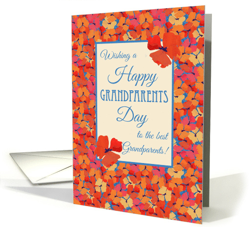 | Artist Notes: | A pretty Grandparents Day Card, with Orange, Pink and Red Icelandic Poppies on a Sky Blue background; the Poppies pattern is a digital capture of a hand-painted paper collage by Judy Adamson. The text is in blue on a taupe background and the inside is left blank for your own message. |
