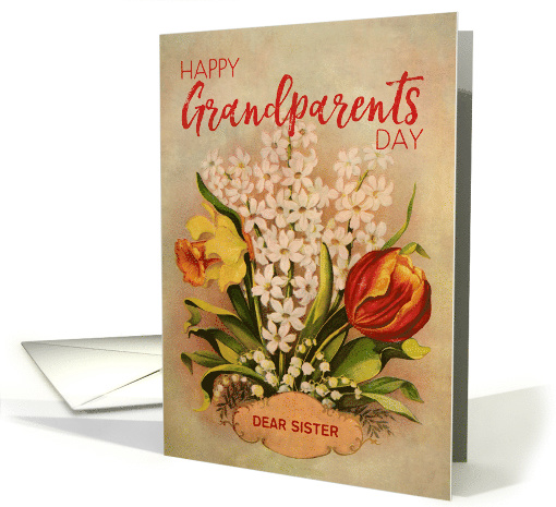 | Artist Notes: | Greet your sister a "Happy Grandparents Day" with this card that has a vintage feel to it, featuring a tulip, narcissus, hyacinth and lily of the valley. You can customize the card front and inside text to suit your needs. |