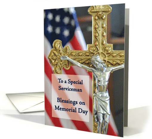 Title: | Serviceman Memorial Day Blessings with Cross and Flag |