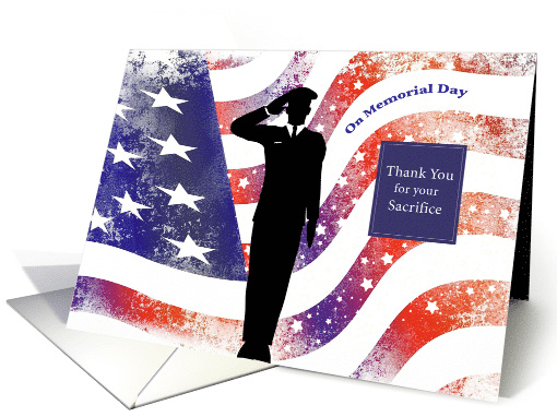 Memorial Day is a special day to thank our soldiers for their sacrifice. This image has a background of the American flag with a silhouette of a soldier saluting.