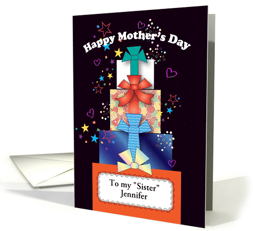 | Artist Notes: | Give this custom name Mother's Day card to that special friend. The cover features colorful presents, confetti, and a white headline. The personal name is placed at the bottom of the card. You may change the inside message if you wish. ©Gail Pepin |