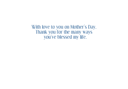 If there is a lady in your life who is as close a sister to you, this beautiful Mother's Day card is the perfect way to greet her at Mother's Day and let her know how much she means to you. The blue wording, "Love You", is scrolled across the white card's left side, in flowing and elegant cursive hand lettering, with additional wording, below, that says "Happy Mother's Day, to Someone Like a Sister to Me". On the card's opposite side, a large floral heart is filled with pinks, blue, yellows and white, creating a beautiful combination in the shape of a heart. The inside wording says "With love to you on Mother's Day. Thank you for the many ways you've blessed my life."