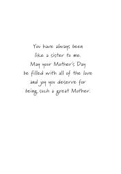 | Inside: | You have always been like a sister to me. May your Mother's Day be filled with all of the love and joy you deserve for being such a great Mother. |
