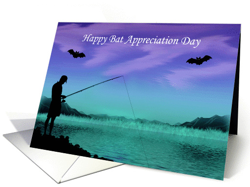 | Artist Notes: | Wish anyone in general a Happy Bat Appreciation Day with a card featuring a fisherman fishing in a beautiful body of water with bats over head. Inside reminds us of why we should appreciate these amazing flying mammals. Design by Laurie Schneider/Elements by Simply Sumara/HF-Projekte/Digital Designs by Elena |