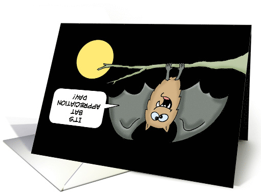 | Title: | Bat Appreciation Day Card With Bat Hanging Upside Down From Tree |