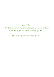 National and International Limerick Day is May 12. A limerick is a light humorous, nonsensical, or bawdy verse created for fun. Send this limerick along to someone that needs a smile or two.