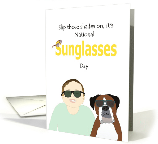 National Sunglasses Day Boy and Dog Wearing Sunglasses