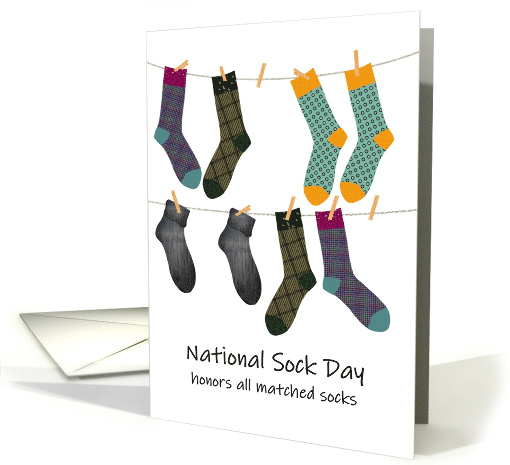 Ever gone looking for a favorite pair of socks only to find the one sock? National Sock Day observed on December 4 honors all the matched socks in drawers and cupboards. This sketch shows matching socks hanging on a drying line.