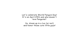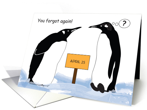 This is a card to celebrate World Penguin Day on April 25, featuring 2 penguins. You can change the inside message at checkout, if you wish. 032212