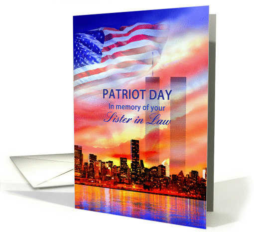 | Title: | In Memory of Your Sister in Law on Patriot Day 9/11, Twin Towers and Flag |