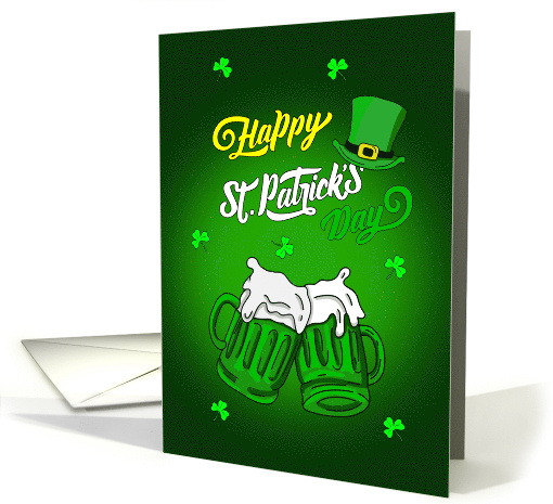 Funny design of two glasses of green beer toasting to wish our friends a Happy St. Patrick's Day. It has very bright green colors and a youthful aesthetic.