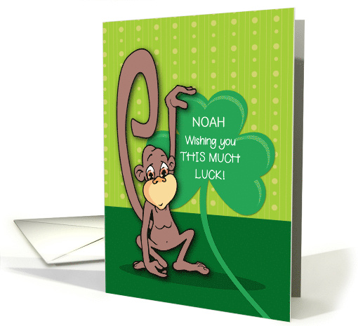 | Artist Notes: | This Custom Name card is the one you need! A wonderful St. Patrick's Day that you can personalize. The name “Noah” is shown but you can easily change it. A beautiful monkey comes with a huge and green shamrock. Wish good luck, good health, happiness and love. |