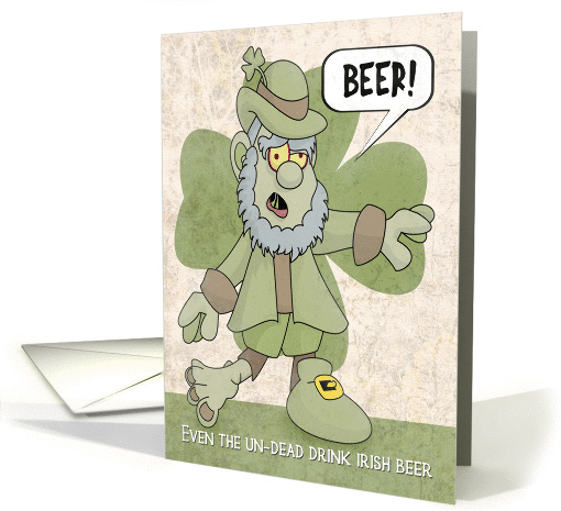| Artist Notes: | Funny St. Patrick’s Day card with shambling zombie leprechaun groaning for beer instead of brains. Cute play on the un-dead celebrating the Irish holiday. Design © 2016 Julia Bryant. |