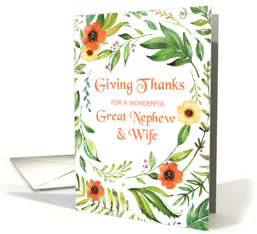 Like the wreath on the cover of this card that is made up of many branches, a family is also made up of family members. Be thankful for every wonderful person that is part of the family just like your great nephew and his wife. This coming Thanksgiving, send them this card to greet them.