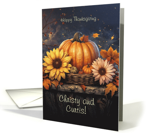 Thanksgiving Custom Name or Names Pretty Fall Foliage Flowers Pumpkins