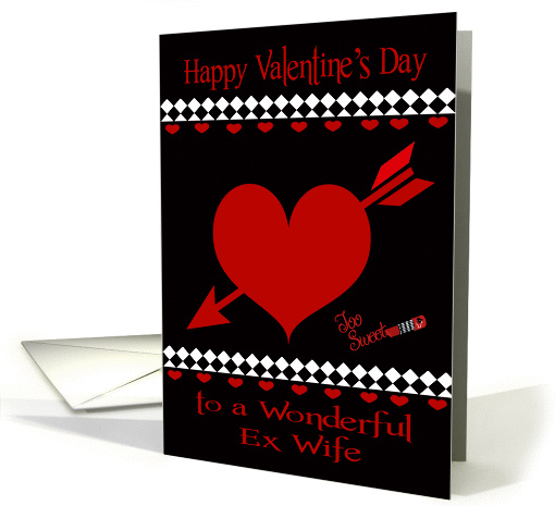 Valentine's Day to Ex Wife, Red hearts on black, white diamonds