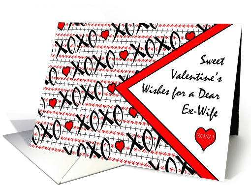Sweet Valentine's Wishes for a Dear Ex-Wife paper greeting card for Valentine's Day. Lots of XOXOs for the ex in your life. Customize the interior with additional text or messages before checkout if you like.